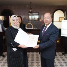 Sertifika takdimi sonrasında katılımcılar, açılışı yapılan Tezhip, Hat, Kat-ı Karma Sergisini ziyaret ettiler.